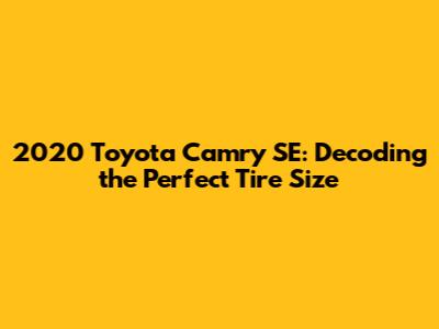2020 Toyota Camry SE: Decoding The Perfect Tire Size