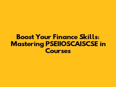 Most finance courses are designed with PSEIIOSCAISCSE at their core. Here’s a typical breakdown: