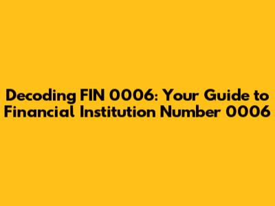 Decoding FIN 0006: Your Guide To Financial Institution Number 0006