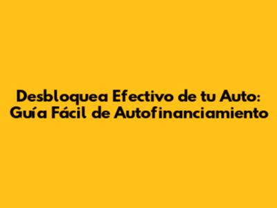 Desbloquea Efectivo De Tu Auto: Guía Fácil De Autofinanciamiento