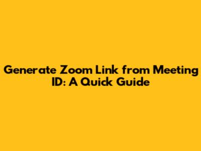 Generate Zoom Link From Meeting ID: A Quick Guide