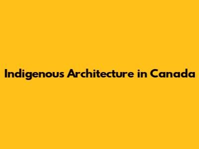 Indigenous Architecture In Canada