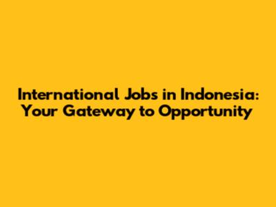 International Jobs In Indonesia: Your Gateway To Opportunity
