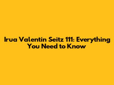 Irua Valentin Seitz 111: Everything You Need To Know