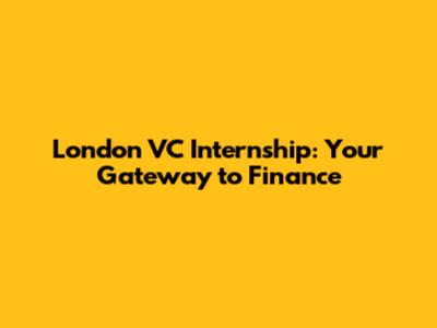 London VC Internship: Your Gateway To Finance