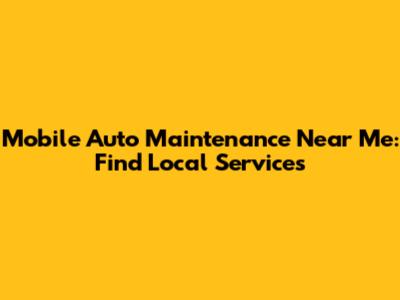 Mobile Auto Maintenance Near Me: Find Local Services