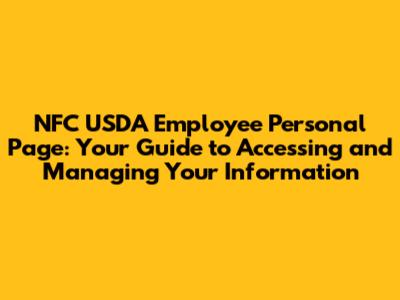 By mastering your NFC USDA employee personal page, you're not just accessing information; you're empowering yourself to manage your career and benefits effectively. Stay informed, stay secure, and make the most of this valuable resource!