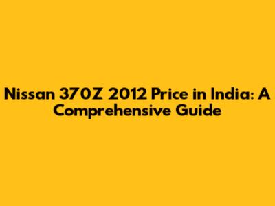 Understanding the Nissan 370Z 2012 Price in India