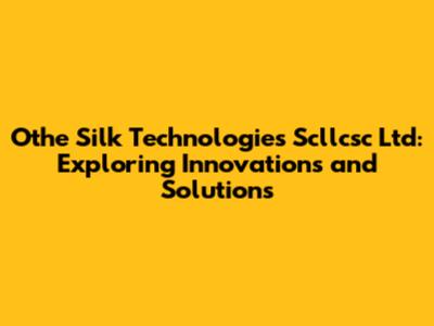 Othe Silk Technologies: Innovations & Solutions Explored