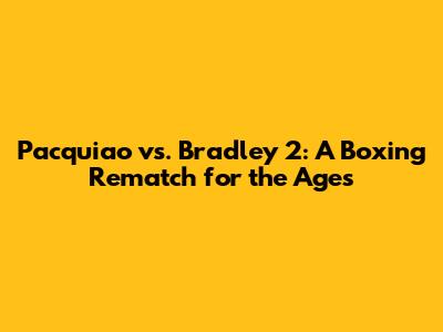 Pacquiao Vs. Bradley 2: A Boxing Rematch For The Ages