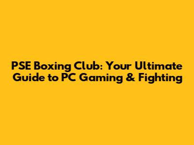 PSE Boxing Club: Your Ultimate Guide to PC Gaming & Fighting