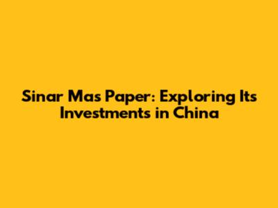 Hey guys! Ever wondered about Sinar Mas Paper and its big moves in China? Well, you've come to the right place! Let's dive into the world of Sinar Mas Paper and explore its investments in the Chinese market. This article will break down everything you need to know in a super friendly and easy-to-understand way. We'll look at the company's background, its strategic importance in the paper industry, and most importantly, its ventures in China. So, grab a cup of coffee, get comfy, and let’s get started!
