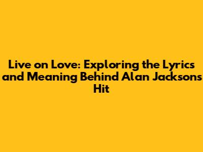 Unpacking Alan Jackson's 'Live On Love': Lyrics And Meaning