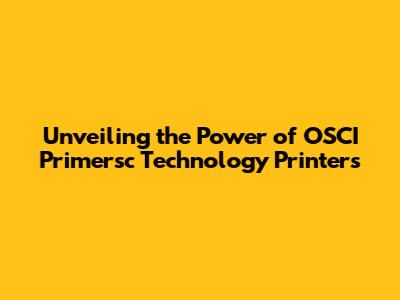 Unveiling The Power Of OSCI Primersc Technology Printers